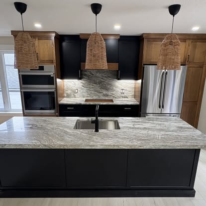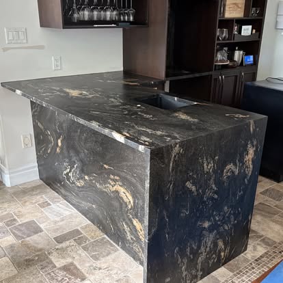 Granite is a natural stone renowned for its durability and striking appearance. It forms deep within the Earth's crust and is composed primarily of quartz, feldspar, and mica. Granite is a popular choice for countertops and other surfaces in kitchens and bathrooms due to its resistance to heat, scratches, and stains. It offers a diverse range of colors and patterns, making it versatile in various design aesthetics. While it requires periodic sealing to maintain its luster and longevity, granite remains a preferred material for homeowners seeking a combination of beauty and strength in their surfaces.